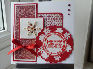 A few more xmas cards today,inspired by Kristina . Where does the time go, it's lunchtime already and I've done nothing today, must get away from this computer soon. My niece Paula had a baby girl on Monday and I have a card to make, the baby came a month early, but mother and bay are both fine, and got home yesterday. Also I am making some roman blinds for my daughters dining room.
